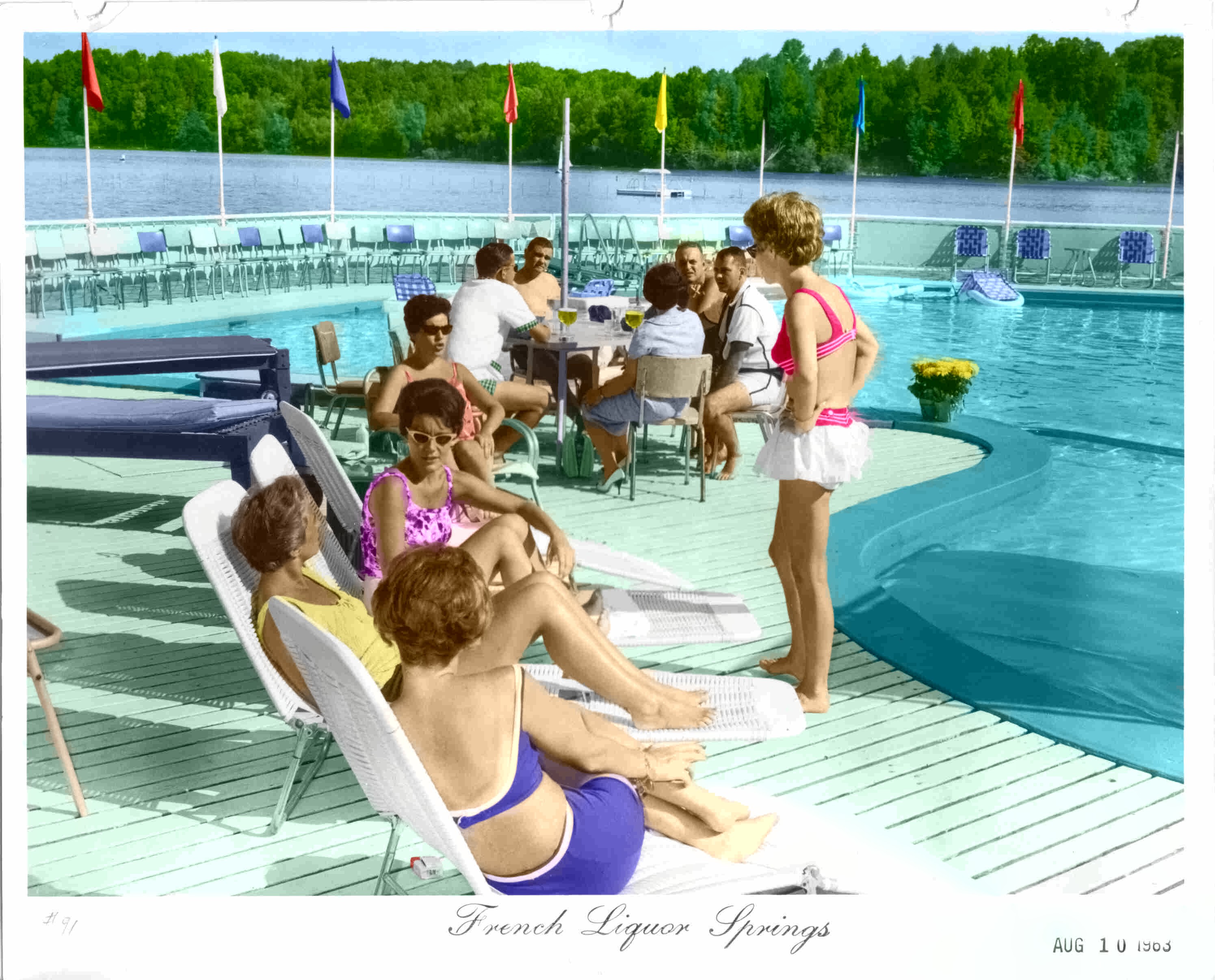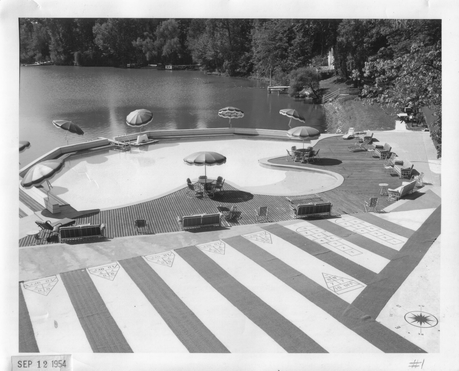 The French's pool, overlooking the lake, circa 1963. Swimwear may have changed, but the French estate remains much the same as it was then.